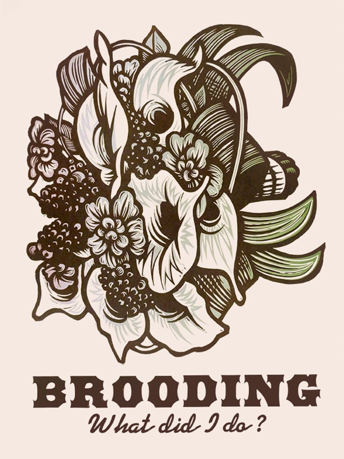 Color Woodcut and Letterpress print, 18" x 24", on French's 100 lb. Cover, Insulation Pink. Handcut, Handprinted with moveable type. Signed. Unframed. Fits in a standard size frame. Edition of 20.