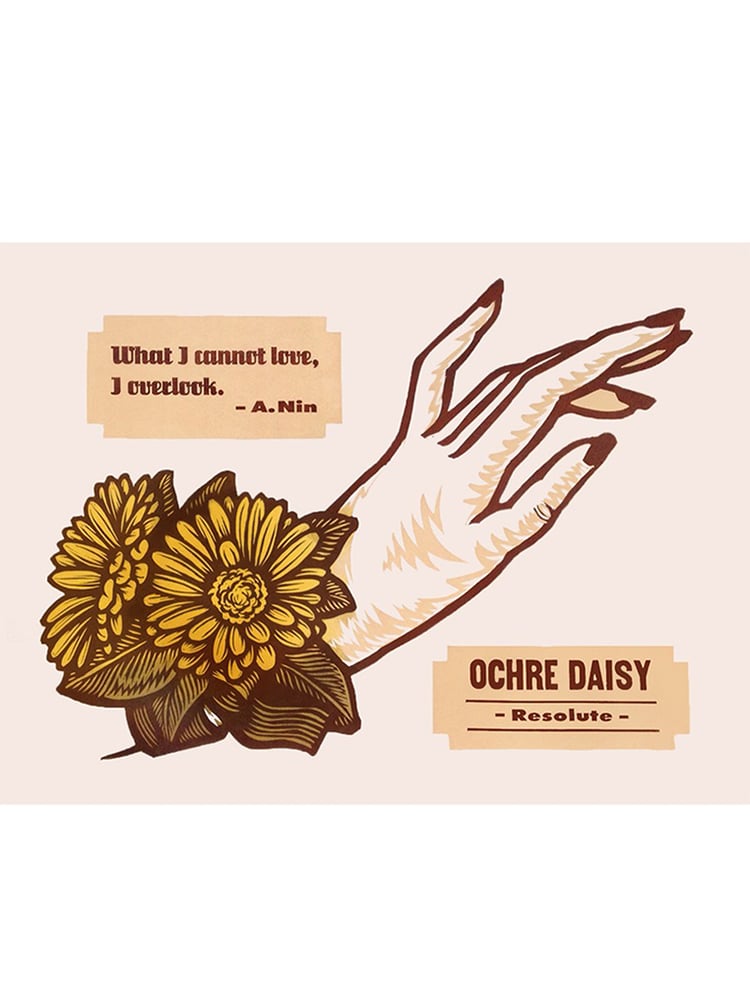 Color Woodcut and Letterpress print, 24" x 18" Horizontal, on French's 100 lb. Cover, Insulation Pink. Handcut, Handprinted with moveable type. Signed. Unframed. Fits in a standard size frame. Edition of 20.