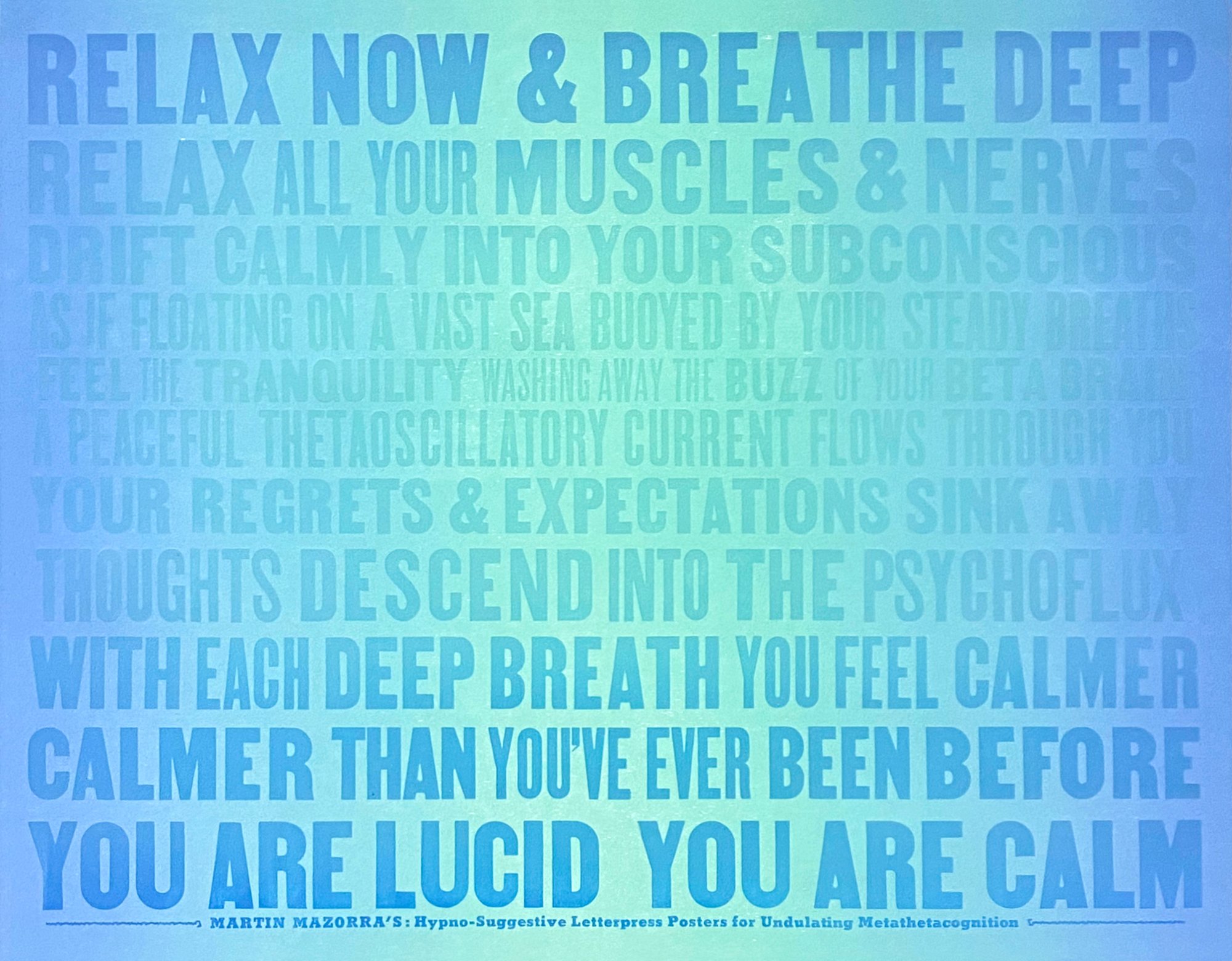 Color Relief and Letterpress print on paper. Hypno-Suggestive Letterpress Posters series. 22" x 28" 2024