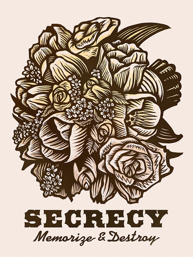 Color Woodcut and Letterpress print, 18" x 24", on French's 100 lb. Cover, Insulation Pink. Handcut, Handprinted with moveable type. Signed. Unframed. Fits in a standard size frame. Edition of 20.